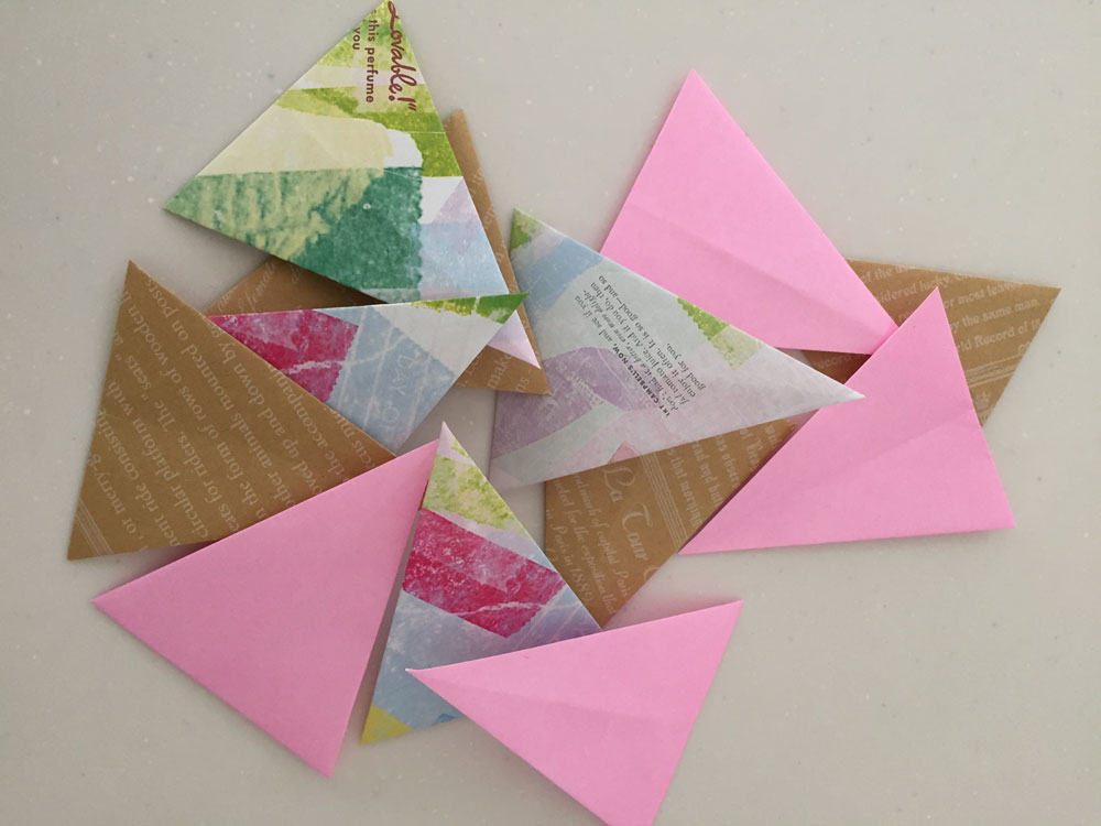 折り紙は単色のものではなく、クラフト紙に模様が入ったものも使っています。