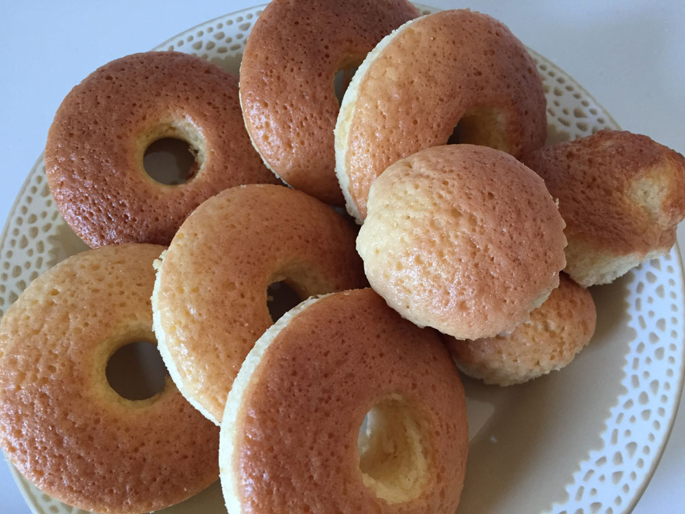 ドーナツ型と弁当用のシリコンカップにおかずカップ(アルミ)をセットして焼くという適当っぷり。