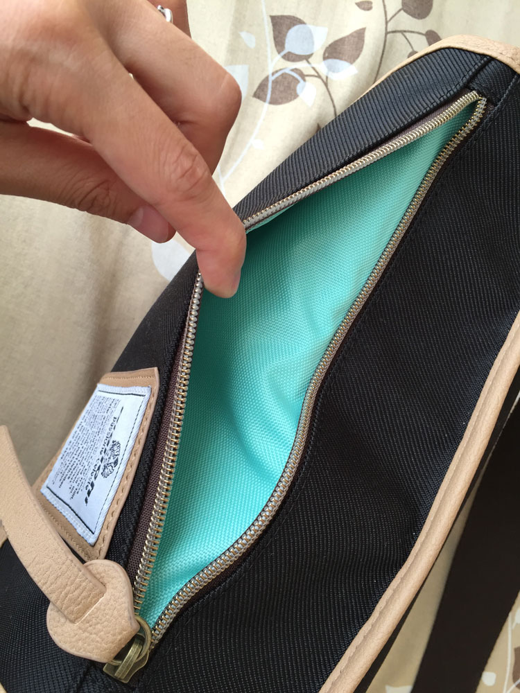 あの自転車メーカーさんです。カバンの内側があのBianchiカラー。