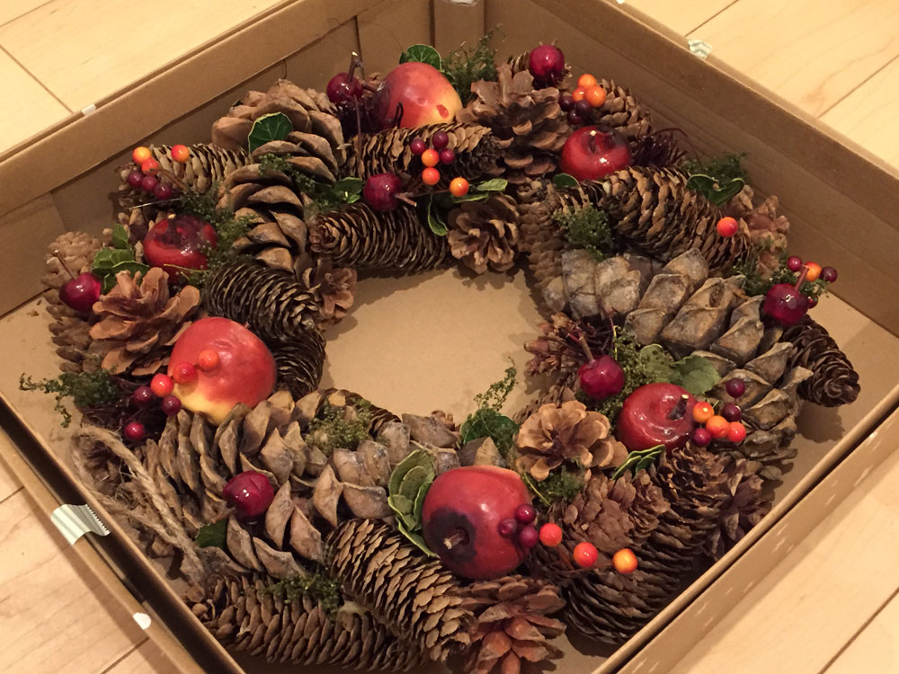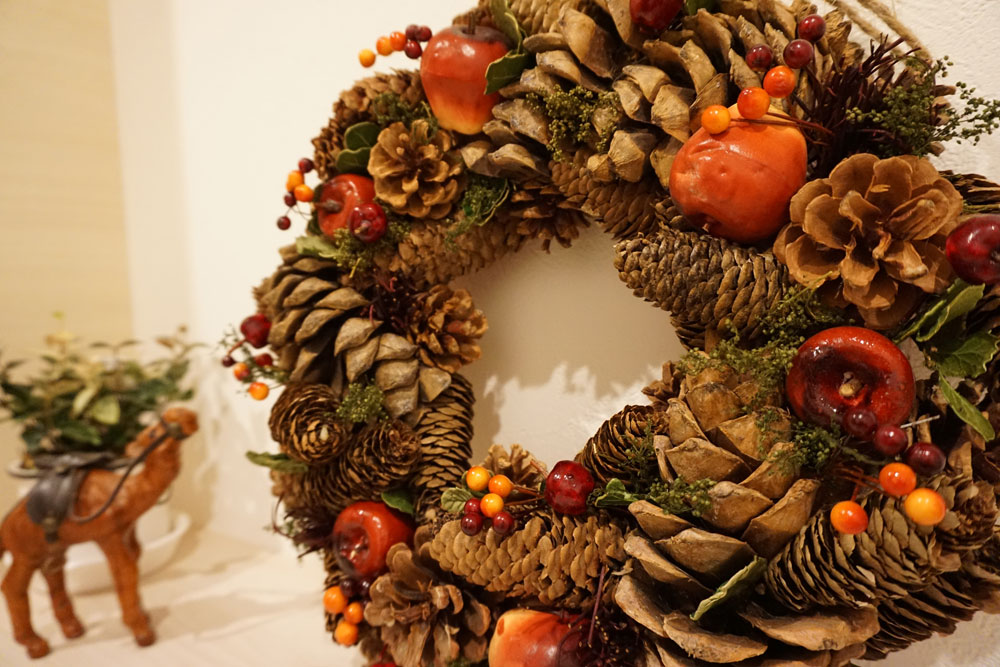 これはリンゴと松ぼっくりのリース