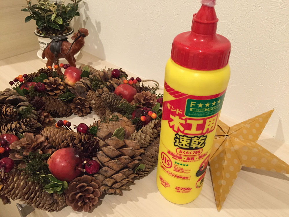手持ちの木工用ボンドで補修。