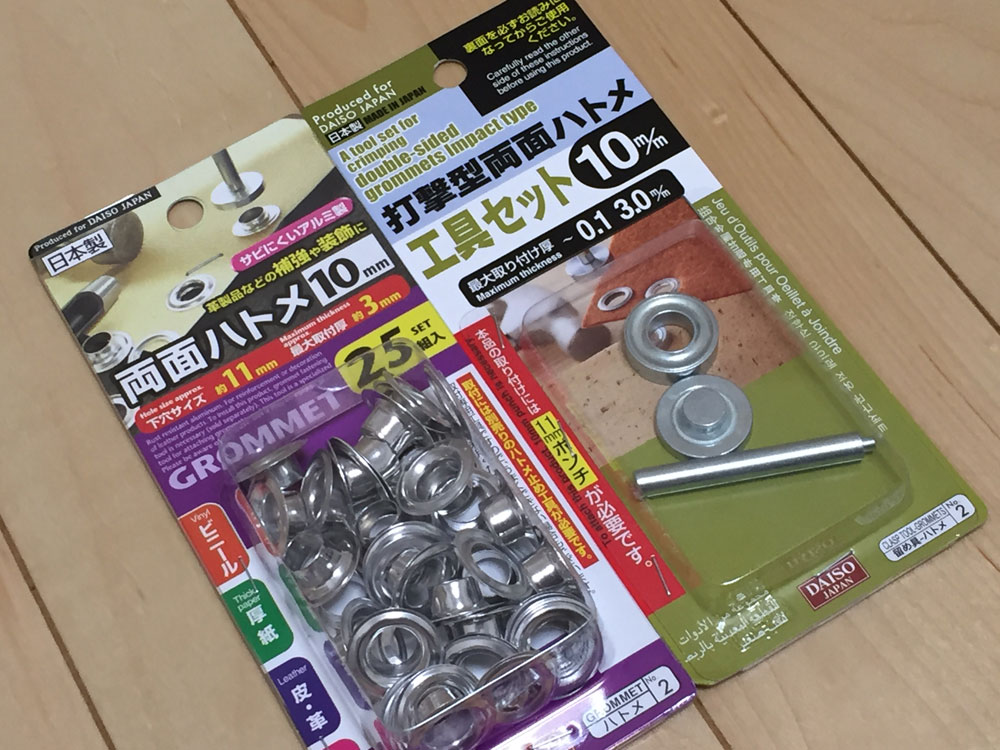 今回は外側の生地部分だけにハトメを打ちました・・・
