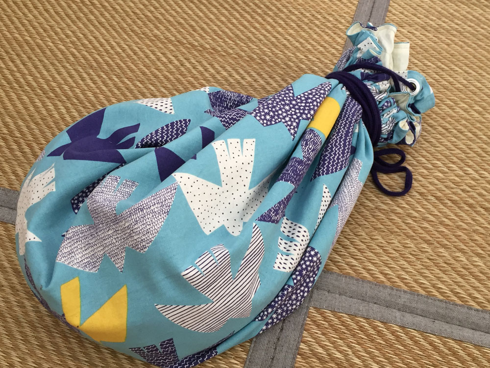私が作ったのは紐が通る部分は基本的には布の中、