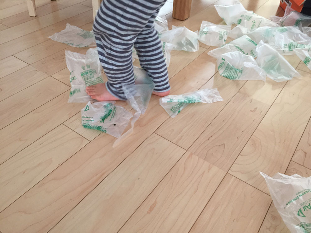 通販で届いた品の梱包材でこんなに遊べるのだから・・・。