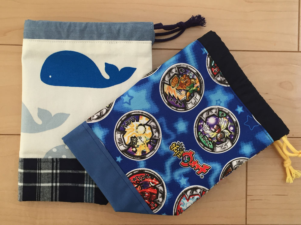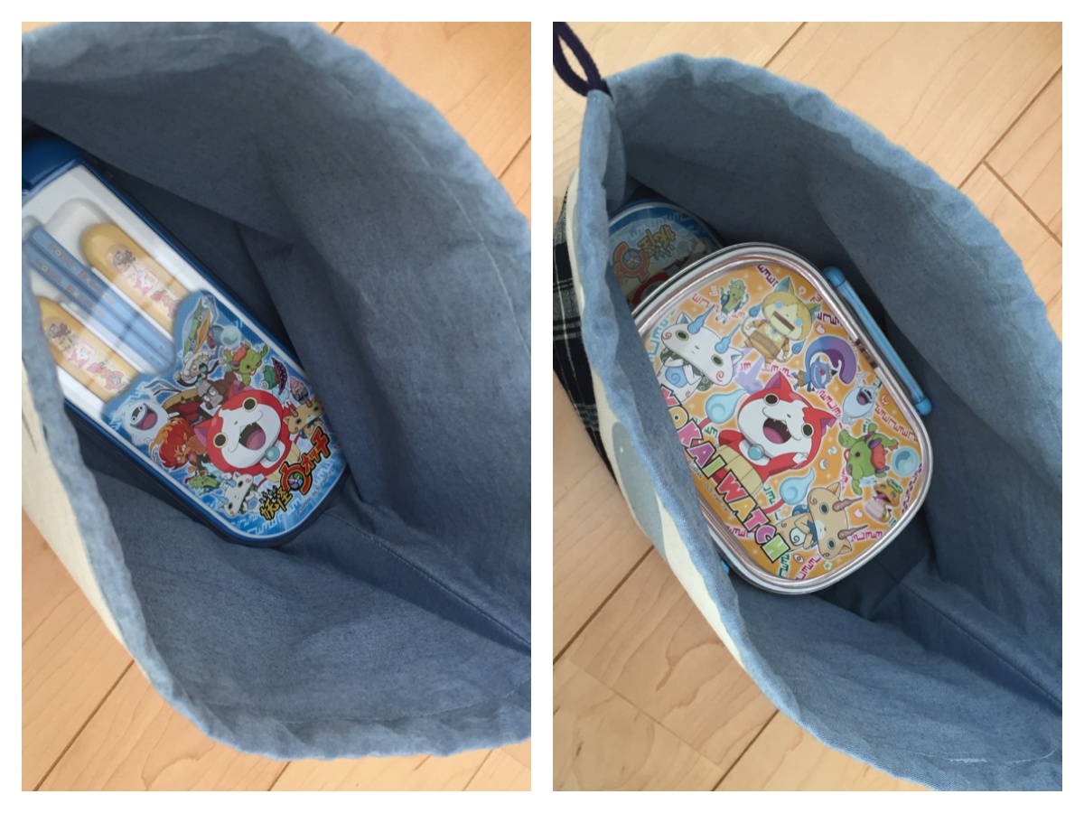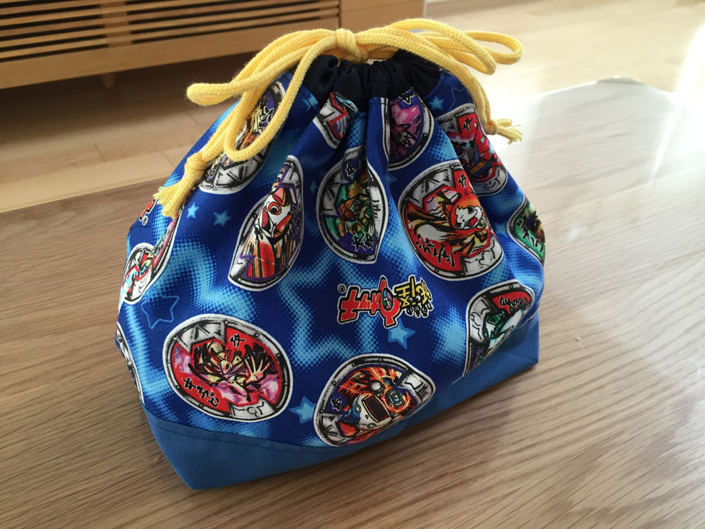前に作った「妖怪ウォッチのお弁当袋」とは下にくる生地の配分を変えています。