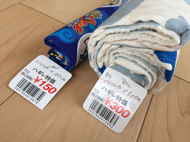 こんな感じのキャラ生地、普通に買ったら1mで1500円コースですもん。
