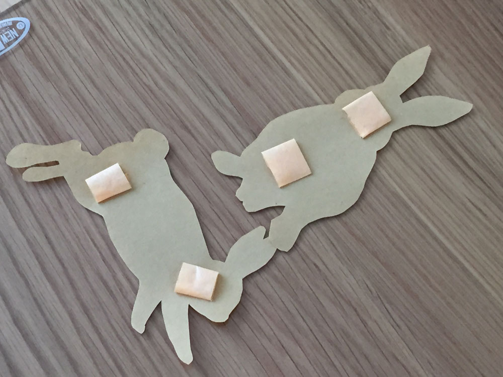 素材を使って、クラフト紙の折り紙をウサギ型に切りたいと思います。