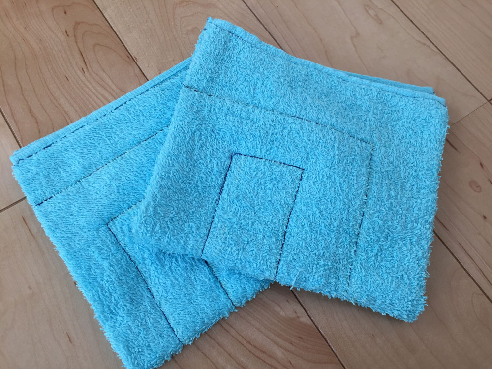 短時間でできて、パワーのないミシンでも簡単に縫える方法を考えてみました。1枚のバスタオルから6枚の雑巾が作れます。